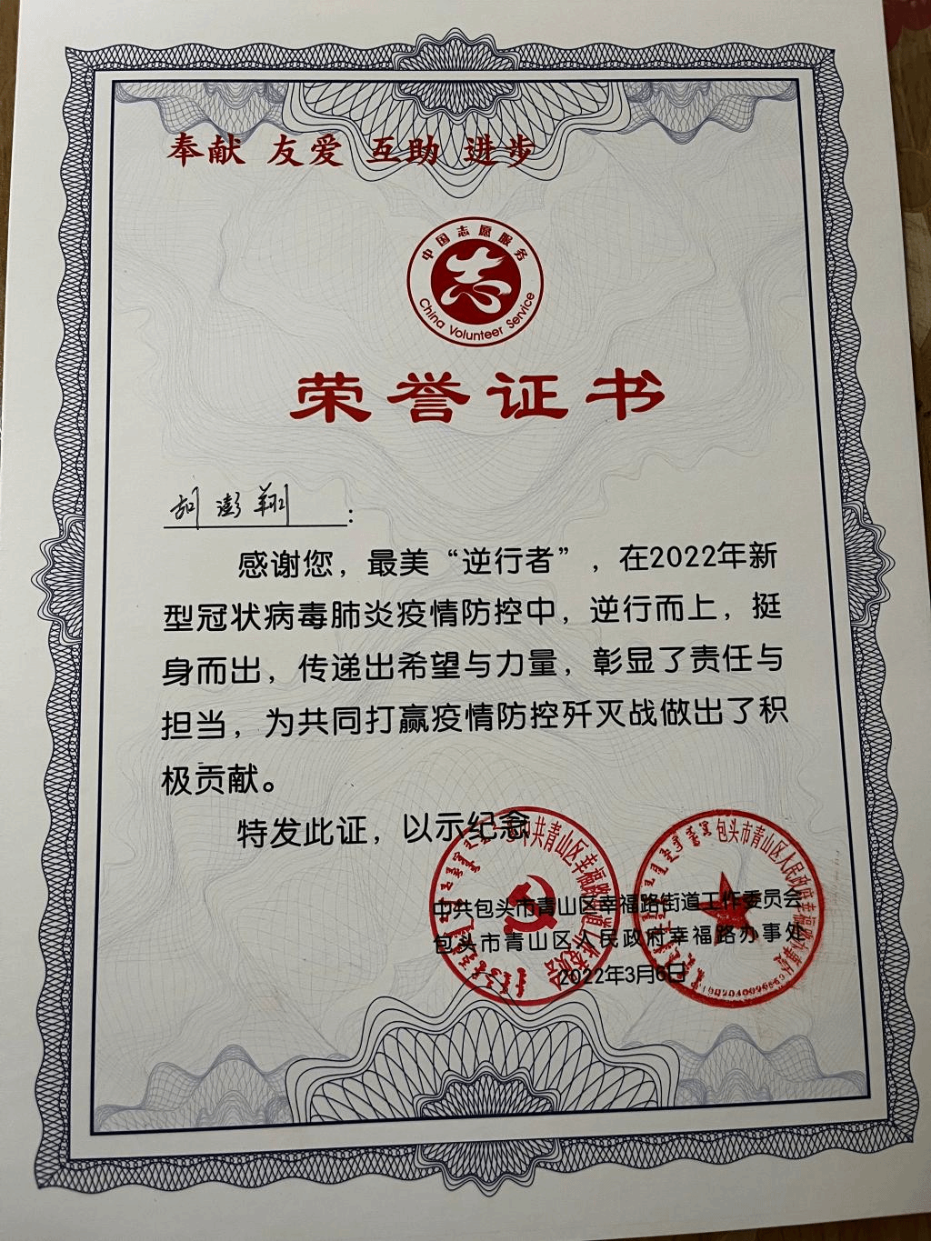 为响应学校党委关于扛起疫情防控使命担当的号召,新葡萄官网AMG研究生党支部全体党员同志充分发挥党员先锋模范作用,聆听身边群众所需,校内党员主动承担楼宇疫情防控志愿服务工作,积极帮助未返校同学寄送行李、查找材料、办理校内事务,从身边小事彰显党员服务奉献精神。校外党员服从所在地疫情防控要求,响应社区防控工作号召,担任社区疫情防控志愿者,为社会面疫情防控工作贡献自己的力量。其中,来自新葡萄官网AMG电子信息研究生党支部的胡澎翔同志在疫情期间主动担任内蒙古包头市青山区幸福路街道志愿者,负责当地居民的日常核酸检测任务。胡澎翔同志穿着厚重的防护服,每天清晨挨家挨户提醒小区居民做核酸,核酸检测开始后,他还需要维持队伍秩序,减少检测队伍混乱现象。而对于部分为重复核酸检测工作感到烦躁或不理解的居民,他则一遍遍耐心地向他们解释核酸检测工作的必要性,以取得居民群众的理解和配合;对小区里行动不便的老年人,胡澎翔同志则发挥自己对小区环境更为熟悉的优势,带领医护人员上门进行核酸检测,每天穿着厚重的防护服多次上下楼,即使每天的志愿服务工作强度高、困难多,他也咬牙坚持,甘心奉献,积极担任社区志愿者,直到社区恢复正常社会生活。胡澎翔同志的付出也得到当地部门的肯定,彰显了信院学子不畏困难勇担当的风采。
