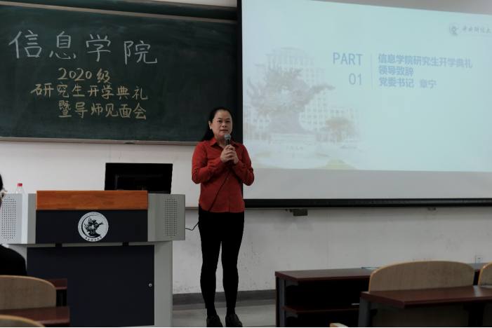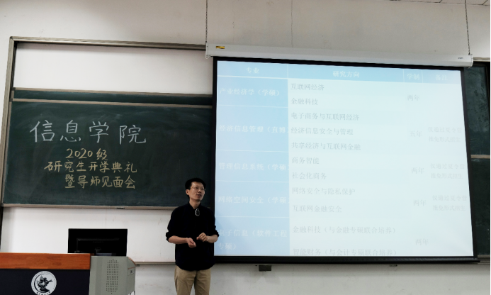 刘国辉老师随后为2020级新生详细介绍了研究生导师们的基本情况与个人履历,同时柴艳妹老师作为导师代表与各位同学见面。柴老师对各位同学进入新葡萄官网AMG表达了欢迎与祝贺,也希望同学们能够珍惜攻读研究生的时光。柴老师建议同学们积极主动与导师联系与交流,按时汇报自己的学习进度,并规划好自己的学习时间、生活时间与工作时间。