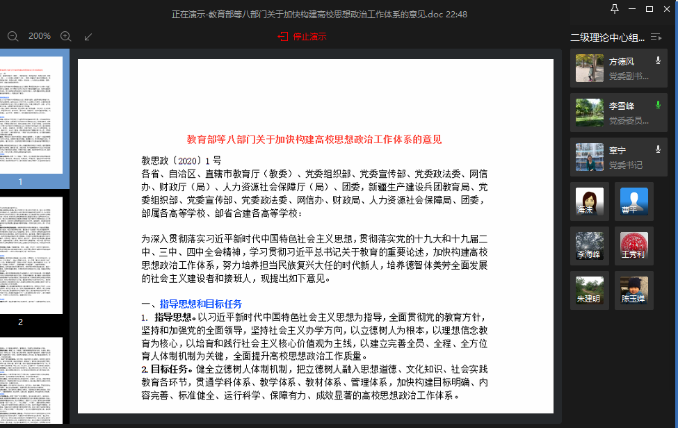 5月18日下午,新葡萄官网AMG党委理论学习中心组通过线上视频会议的方式召开了高校思想政治工作专题学习讨论会,全体成员参加了此次学习。讨论会由新葡萄官网AMG党委书记章宁教授主持,党委副书记方德风老师进行了重点发言。