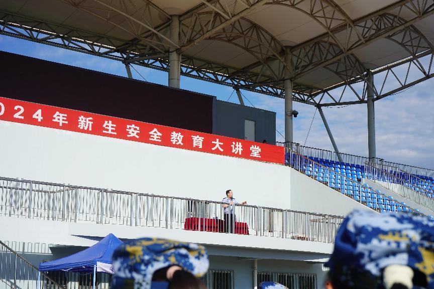 9月6日上午,新生安全教育大讲堂在操场举办。通过警察同志的讲解,同学们对电信诈骗、毒品管制、交通安全、火灾隐患等方面的危险防控有了更加清晰而全面的认知,在以后的生活中也将更加严谨地对待自己的生命和财产安全。