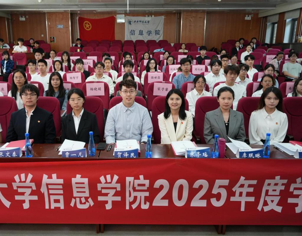 贺译民代表学院团委致辞,希望全体代表能以高度的责任感履职,确保大会圆满举行,鼓励信息学子将青春梦想融入时代洪流。