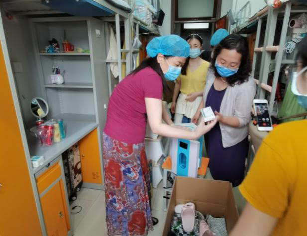 6月28日下午,新葡萄官网正式开始2020届毕业生行李打包邮寄工作,校长王瑶琪、校长助理兼新葡萄官网AMG院长李涛、党委书记章宁、党委副书记方德风、副院长李海峰及学院行政老师、辅导员进入学生宿舍为毕业生整理物品、打包行李、填单邮寄。在宿舍内,王瑶琪校长与学生视频连线、耐心沟通,仔细核对物品,充分按照学生意愿为其整理封装。老师们根据“一对一、点对点”的打包原则,从床上到床下,从门口到阳台,不落下每个角落;大到被子,小到照片,老师们都细心寻找、妥善装箱,“老师帮你把专业课书打包好了,以后用得上”,“这个容易碎,一会儿得给你好好包上”,每一件行李都记载着老师们对毕业生的不舍与惦念,校领导的重视与关怀更为老师们鼓足干劲、为学生们传递温情。