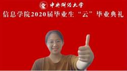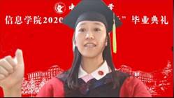 典礼最终以一曲《明天你好》纪念视频画上句号。视频里,天南海北的好友跨越千里,一同相聚在云端。同学们一人一句,共同串起对未来的美好期许,歌词传递着迷茫与期待,歌声承载着怀念与不舍。屏幕上逐一闪过同窗好友的笑颜与告别,这一刻,许多同学纷纷伤感。人生相逢有时尽,相信情谊能克服远距离。即使各自扬帆,信院学子的心也始终有一线牵连在一起。