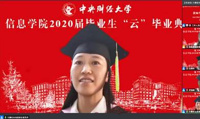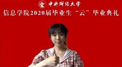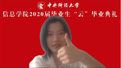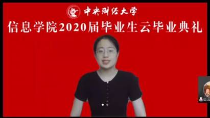接着,毕业生代表同学发言。信息管理16的白如玉同学首先代表2020届本科毕业生发言。她回忆了毕业生同学们在中财大度过的四年难忘时光,学习生活中得到了师友的宝贵指引和陪伴,四年中,同学们丰富自我,成就梦想。她提到,在中财这所财经类院校,新葡萄官网AMG拥有财经和信息化学习的交叉背景,赋予了毕业生更丰富的选择,回归学术本质,引领学生不断探索。白如玉同学又回顾了2020年毕业季的意外时光,面对疫情带来的种种不确定,大多数人仍旧稳步向理想前行。她坚信每一位信院学子在未来的道路上都能担起一份责任,永葆对生活的兴趣,拥有独立自主的能力和美好的前途。