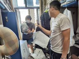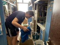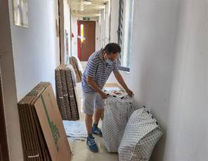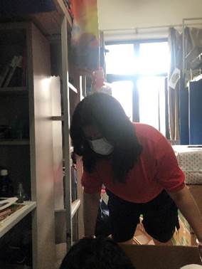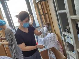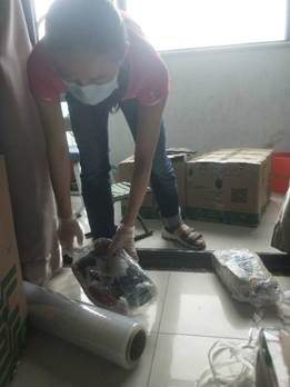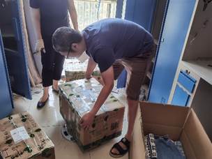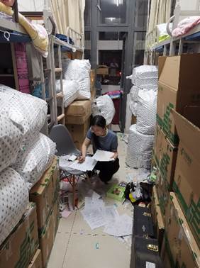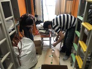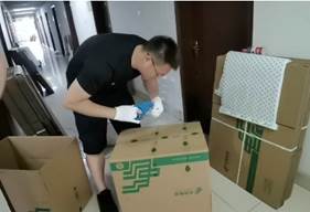 王卯宁老师精心与学生沟通,归置装箱物品 李雪峰老师精准高效组箱完毕