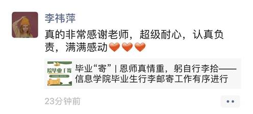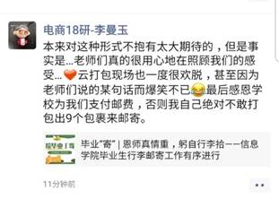 纵然相隔千里,虽隔屏幕内外,但师生们的心从未分离。寄出的是行李,收获的是青春,一份份行李承载着浓浓的师生情和沉甸甸的新葡萄官网AMG时光回忆。