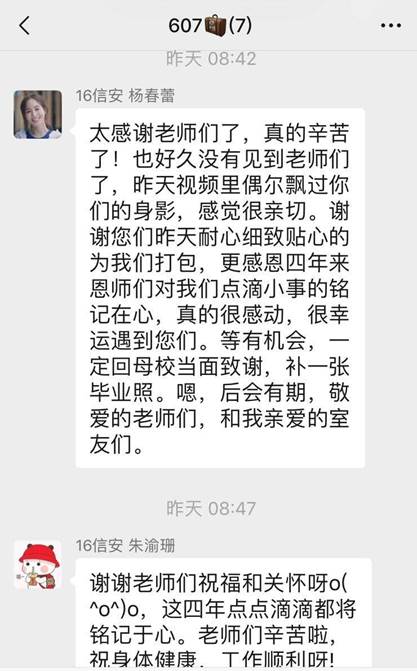 那些在讲台上答疑解惑的教授们,那些在课堂上严谨教书的园丁们,那些在课堂外默默付出的老师们,如今在学生宿舍里来回穿梭,身体力行上了一堂行走的毕业大课,将还没来得及说出口的祝福和叮嘱装进行囊,送往学生身边。