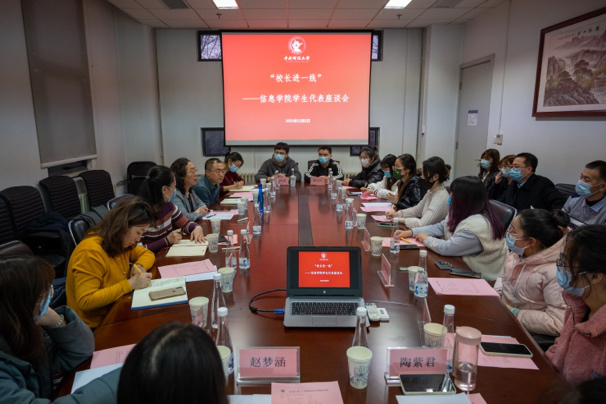 12月1日下午,王瑶琪校长来到新葡萄官网AMG,与2018级信息管理与信息系统专业、电子商务专业本科生代表以及联系宿舍的同学进行了亲切座谈。座谈会由新葡萄官网AMG党委书记章宁主持,校长助理兼新葡萄官网AMG院长李涛、学校办公室副主任刘星、2018级信息管理与信息系统专业和电子商务专业班主任和辅导员等参加了本次座谈会。