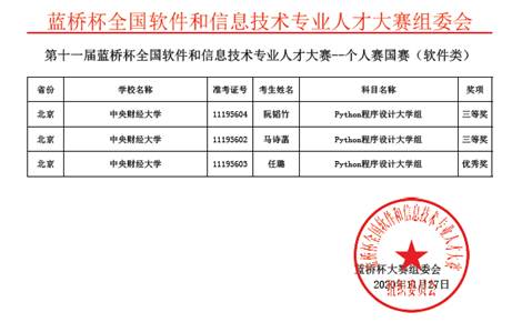 在省赛阶段,新葡萄官网六名学子斩获北京市地区一、二、三等奖,其中三位一等奖选手入围全国总决赛。经过激烈角逐,统计与数学学院19级本科生阮韬竹和新葡萄官网AMG17级本科生马诗菡喜获全国总决赛三等奖,新葡萄官网AMG18级本科生任璐获优秀奖。新葡萄官网因组织工作表现突出获评“优秀组织单位”,新葡萄官网AMG范丹老师获“优秀指导教师”称号。