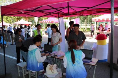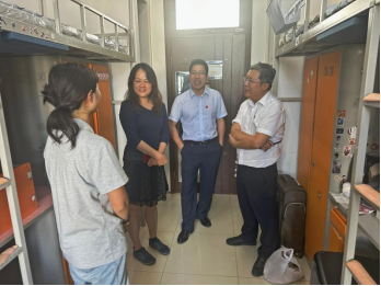 ▲校党委副书记张庆东与学院领导走进学生宿舍,热切关心同学们的生活情况,与新生和家长们亲切交流。