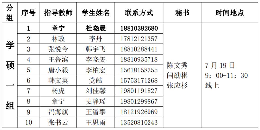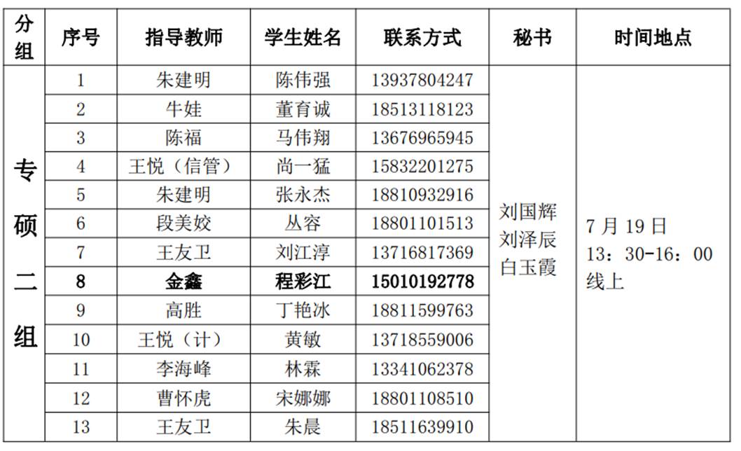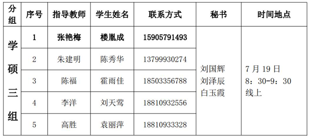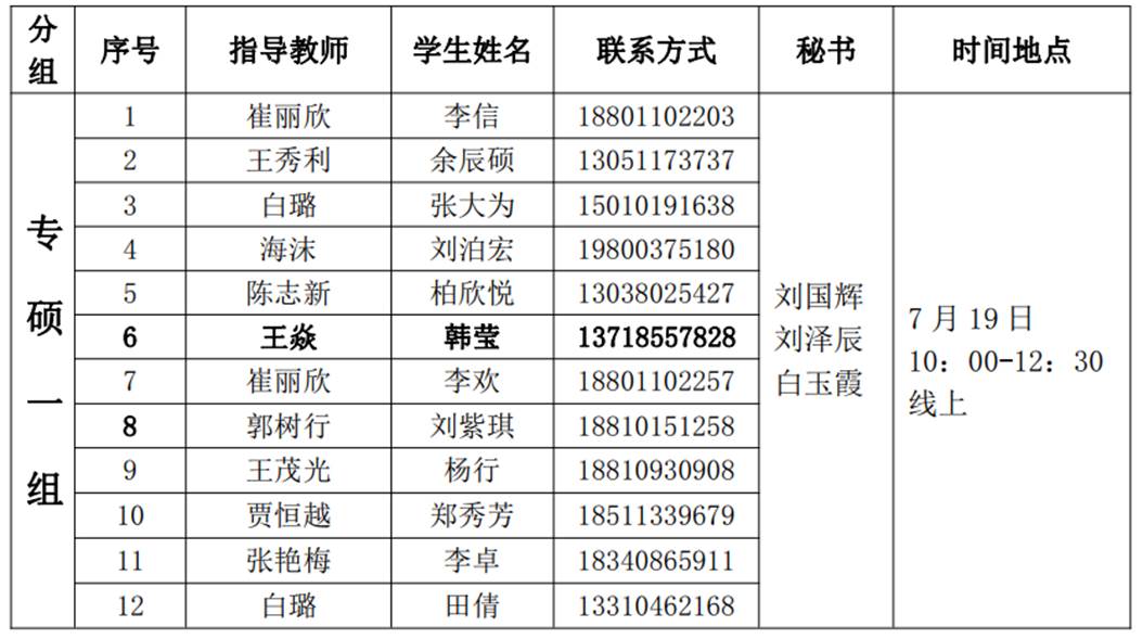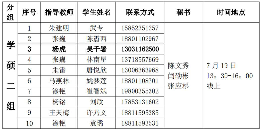 注:加粗显示部分为本小组学生负责人,请负责人做好本组答辩企业微信群创建工作。群成员包括本组秘书和本组全部同学。